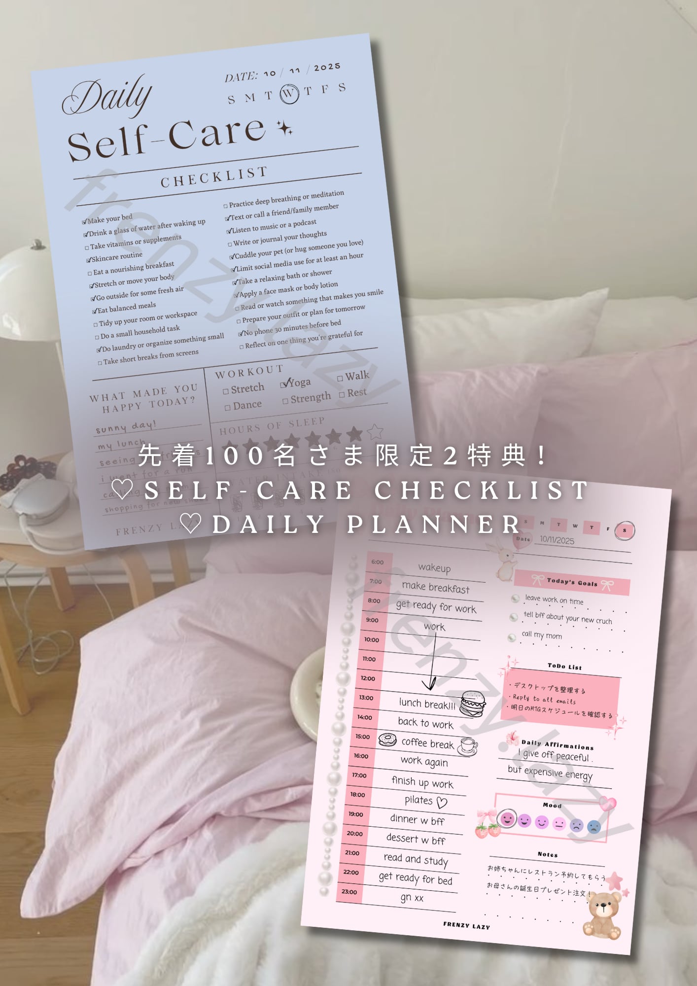 ご購入の方には、海外ガール風Self Careチェックリスト&DailyプランナーPDFを無料でプレゼント!